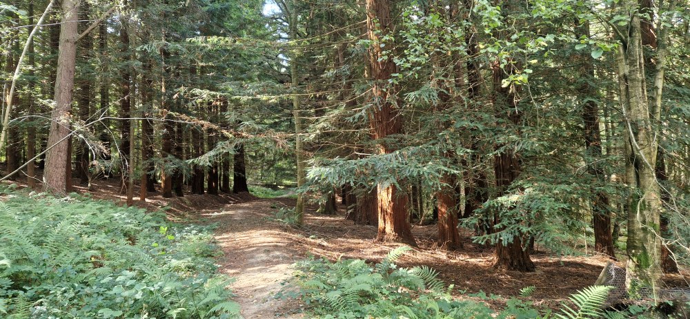 | Thanks to Steve who sent these photographs and wrote to say; "We were walking through the woods between Hectors Lane and Shovelstrode Lane in East Grinstead, West Sussex. Here we stumbled across a micro coastal redwood forest with between 75 to 100 coastal redwoods. I really don't know who planted all these but going by their girth and sizes I would estimate them being 100-150 years old. Maybe in Victorian time this was part of a huge estate." What a great find Steve! Thank you for letting me know about this Coast Redwood grove. |