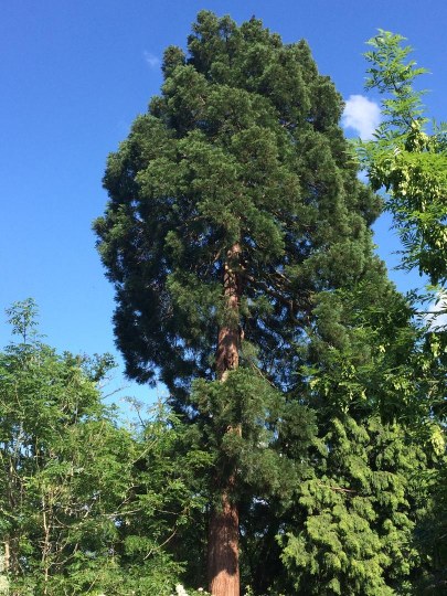 | Nick sent the above photographs of another Giant Redwood right by his flat. He said "I've been living here almost two decades and clearly have not been paying attention to the trees. Location: Bluebell Rise, Lightwater, GU18 5YN. History: Former site of Lightwater Grange. Now a housing estate built in the mid-late 1980’s." Thanks Nick, it's always a nice surprise to find another Redwood, and more so when it is so close to where you live! |