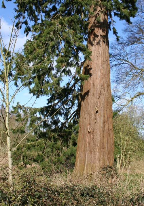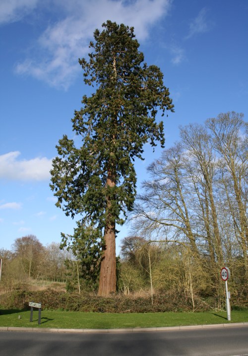 | Thanks to Tom who wrote to say; "My grandson Huxley aged 3 passes this tree on his way to nursery and every time he says 'look that's the biggest tree in Norwich'" It's located on the corner of Atlantic Avenue and Wroxham Road. With WGS coords Latitude 52.6639428 deg N, Longitude 1.3352741deg E It's a single tree in the grounds of Sprowston Hall which is now a hotel and golf course. The hall was originally built in the 16th century but was completely rebuilt in the Elizabethan style around 1872. Reading the history of the introduction of the Redwoods to the UK it seems to be quite probable that this tree was planted at the same time the hall was rebuilt. It is exceptionally tall. Some time in the future I will see if I can get a girth measurement and make a rudimentary inclinometer to establish a possible height." The photos are great Tom and measurements would also be marvellous. Your grandson could be right about it being the largest tree in Norwich! |