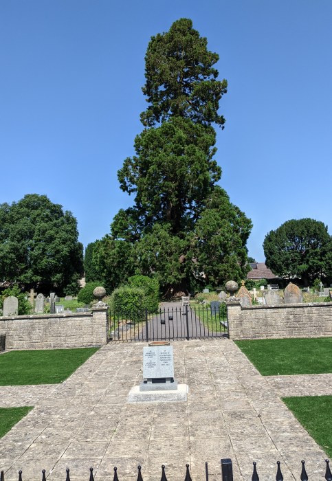 | Thanks to Ed who wrote to say; "I spotted this tree peering over house roofs the other day. It is in Royal Wootton Bassett Cemetery, at the end of Downs View. An information sign says that it is a Wellingtonia tree and is 110 feet tall." It certainly is a splendid tree and framed by a fabulous blue sky. If you were wondering what was written on the plaque: ![]() |