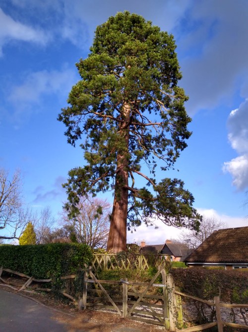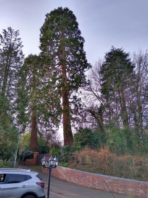 | Thanks to Sam wrote to tell us about the many Giant Redwoods (Sequoiadendron giganteum) in Alvechurch. These stand in School Lane and Sam wrote; "We have a number of Giant Redwoods in the village of Alvechurch. The local magazine wrote an article on them a few years ago. Here is the link. They are amazing trees!" The Redwoods in the second photograph "are outside the back entrance to a very beautiful, large Georgian/Victorian House called The Shubbery. They are quite a size. This house is next to the graveyard, at the top of School Lane." Thank you for letting me know about the Giant Redwoods in Alvechurch and for the link to the very interesting article in the local magazine. I am quite jealous of you having a Redwood in your front garden! |