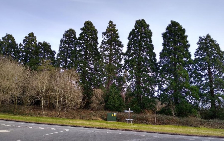 | Thanks to Sam for sending the location and photographs of Giant Redwood trees in Alvechurch, this row can be found in the Redditch Road. Sam wrote; "There are a few here, as you leave the village and head towards Redditch." |