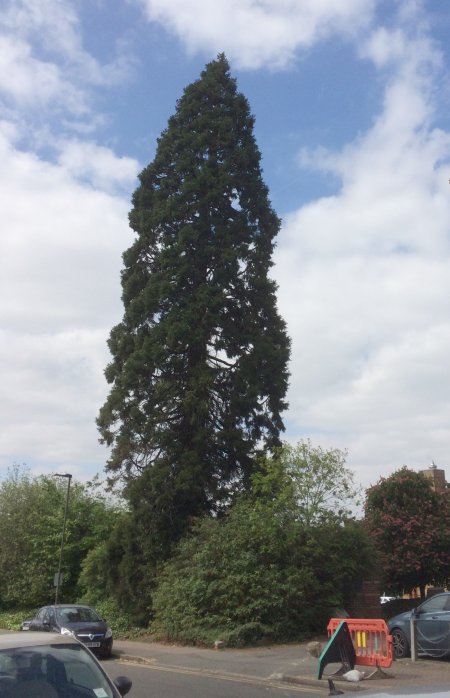 | Graeme wrote to say "There's a Sequoiadendron giganteum near the junction of Church Avenue and High Street, on the edge of the car park behind the Beckenham M&S." Thanks for the photograph Graeme and I noticed on Google street view that there is another Sequoiadendron giganteum where Church Avenue meets The Crescent, and yet another a bit further down The Crescent next to the walk way into the rear of M & S. I always say where there's one you often find another one or two nearby! |