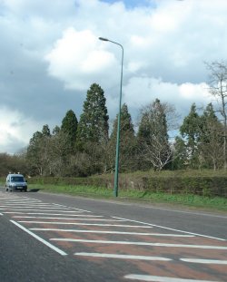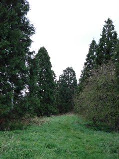 | Travelling along the A414, this group of young Giant Redwood are difficult to miss. There are fourteen of them altogether, with one having a split trunk. It is great to see that someone (probably the council) has made the effort to creat something a little out of the ordinary. It would be marvellous to be able to look a hundred years into the future and see the long term result of this nice piece of planning. |