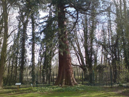| Thanks to Keith for sending the above photograph of a Giant Redwood in the Harlow. He thinks that not many people will have seen it because it is in the grounds of an old laboratory that closed down around 2006. He says "I hear the site will be demolished, the grounds are stunning with some very fine large trees spaced out. The redwood is at least as big as any I have seen on your site, the base looks thicker than many." |