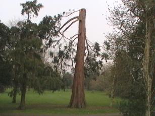 | Thanks to Andrew for these photographs of Redwood trees at Brays Nature Reserve. Andrew says, "there are six Coast redwood and five Wellingtonia, one of which has had its uppermost section chopped and only has a few branches, fortunately there are two young Wellingtonia growing nearby to make up the difference. There are lots of other trees too - all labelled - including an imposing Monkeypuzzle." It is sad when trees are cut in this way, for whatever reason, but it is also good to see new trees being planted to replace them for next generations to enjoy. |