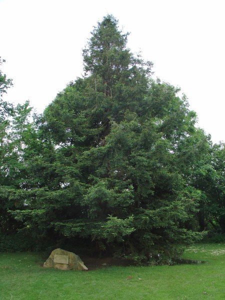 | This Coast Redwood was found by chance on a visit to the Cargate Picnic Area at the junction of the A303 (London-Exeter Trunk road) and A3088 (Yeovil spur). Underneath is a plaque which reads;