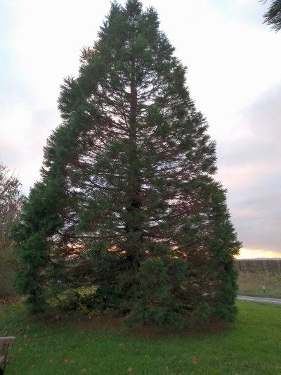 | On Google street view we noticed there is also a young Giant Redwood sapling next to the bigger tree and asked if anyone could supply us with a photograph of the young tree. Matthew kindly obliged with the above snap. |