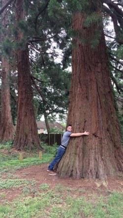 | Sam wrote to say that he "took some photos of the avenue at Chobham ridges" in July 2019. The tree-hug picture shows the impressive scale of these trees! |