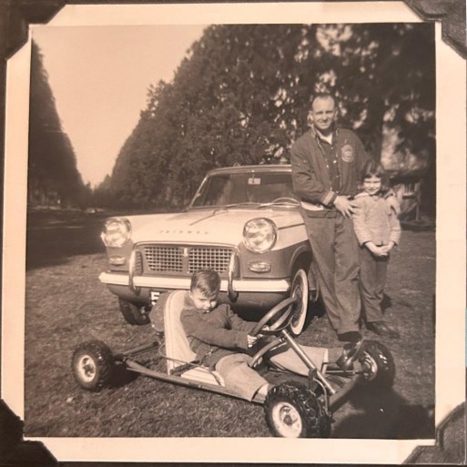 | This was an amazing surprise discovery in April 2004. This incredible avenue of two hundred and eighteen Wellingtonia is near the town of Camberley, running parallel to the Chobham Ridges (B3015, which meets the B311 just north of where the avenue terminates). The avenue begins straddling Yockley Close at the southern end, passes along a park before going through walkways and reaching up near Upper Cobham Road (B311). A walk along it seems to last for ever and passes Redwood Drive (naturally...), and Longlands Way. One point worthy of note is that despite the passage of almost a century and a half, very nearly all of the original trees are still standing tall and proud. This surely demonstrates the hardy nature and marvellous disease resistance of these trees - their only real enemy being lightning - and greedy land developers of course! The picture does not do the avenue justice, but does at least show a small section of these superb trees. Thanks to Duncan who sent us some very interesting information about this avenue in 2006: I can tell you this avenue was planted in 1865 by my great great grandfather, Frederick Street (1835-1906). He did this on behalf of Augustus Mongredien - the then owner of Heatherside House (a pretty house which still stands beside the B311, at the northern end of the avenue), with its associated tree and shrub nursery which extended over some 30 acres nearby of what was then the Bagshot Heath. A brief history of Mongredien's nursery, and the planting of the avenue, is given in E J Willson's book Nurserymen to the World [published privately by Miss Willson in 1989; ISBN 0-9514364-0-6] Larry emailed in 2009 to say "My parents were stationed in London from 1960-1964. During that time they rented half of a manor house known as "Yockley End" in Camberly, Surrey off London Road. The manor house, split into a duplex, had a driveway that was lined with redwoods. I don't remember the house, being only months old. I had the chance to visit in 1975 and those are the only redwoods I have ever seen - very cool as an American. They were huge. By that time the grounds had been subdivided for new homes - the tennis court, golf course, and most of the grounds were gone but the trees were still there. The stories I heard growing up was that the trees were brought over from California in the late 1600's or early 1700's. Not sure how true that is. Thanks Larry, yes, I guess the estate was divided up but I am pleased they retained the Redwoods. It is nice to have a record of people's memories of these old estates. Giant Sequoia were only discovered in the 1850's by the Victorian plant hunters, so the stories you heard about the trees being brought over from California in the late 1600's or early 1700's were not accurate. People could easily be forgiven, however, for believing that they are much older than their actual years as the larger trees give the appearance of much greater age. If this avenue of trees was among the first to be planted in the U.K. that would make them now just over 150 years old (in 2009) - still babies of course! ![]() Larry wrote again in 2026, he sent this picture "circa 1960 with my Dad showing off his new Triumph with the Wellington trees in the background. One of my sisters with dad and my older brother showing off his new go-kart that dad bought him." |