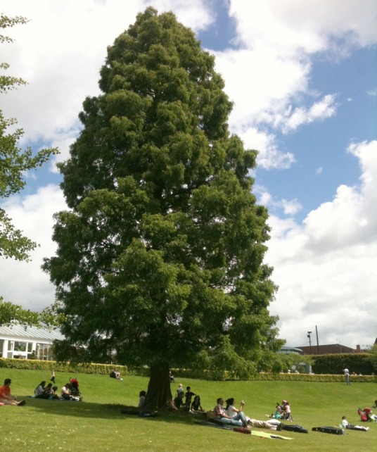 | Thanks to Paul for this additional photograph of the Dawn Redwood on the main lawn in its Summer foliage. |