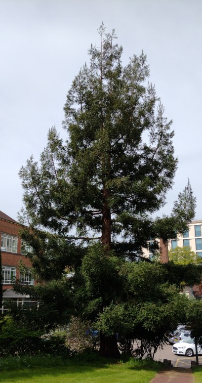 | In May 2022 George wrote; "I’m not very familiar with coastal redwoods but I believe that I have found one next to the Wellingtonia behind the Old Gym.". |