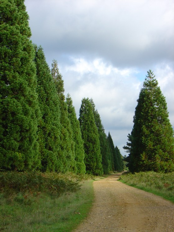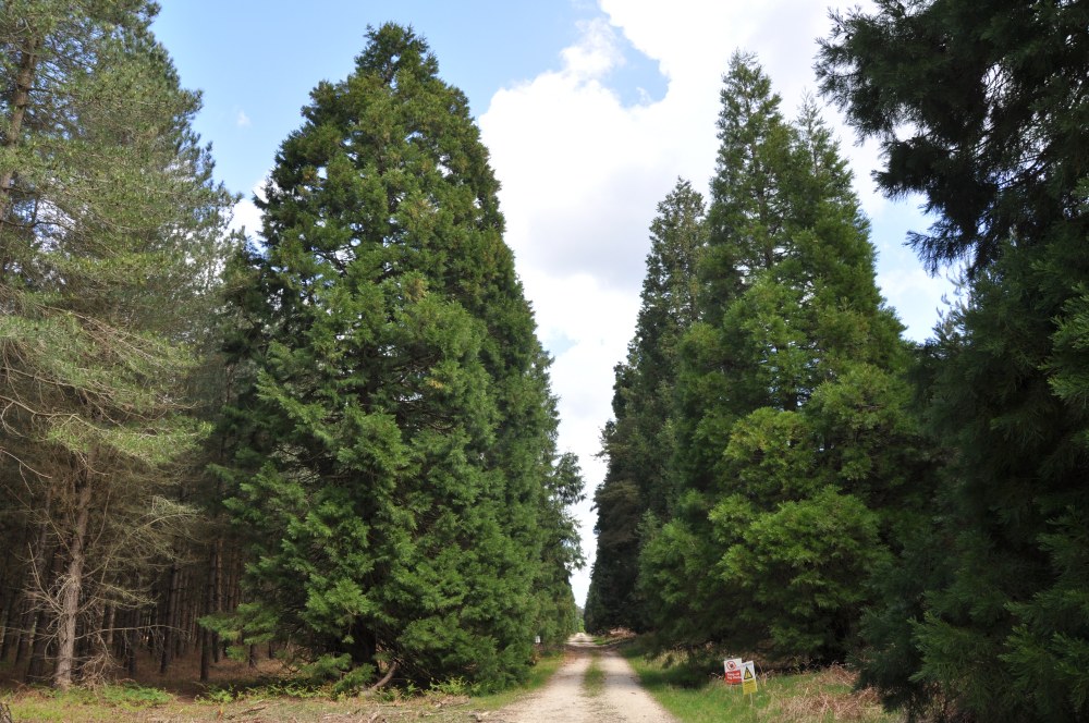 | This avenue of fairly young Giant Redwoods, probably planted around the 1970's, was a fantastic discovery while going through Elveden forest. If you have any information about when and why this avenue was planted, we would love to hear from you. While walking along this avenue, American F15's on training flights from Lakenheath airfield were flying overhead. It was difficult to know where to look first! |