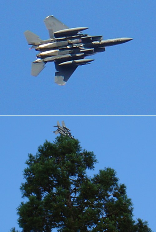 | We paid a return visit in May 2025, the first task was counting all the trees to see if there were still 46 - and there were! Then as much time as was available spent measuring. The 2025 visit was on a Bank Holiday Monday, and the fighter planes were not flying. However, a couple of days later we took a trip to R.A.F. Lakenheath and were rewarded with a magnificent display of American fighter planes, mostly F15's once again. It's a terrific way to spend a few hours for anyone keen on seeing these planes, there is a layby in Brandon Road (N52.415716, E0.583138) and an official viewing area in Wangford Road. |