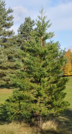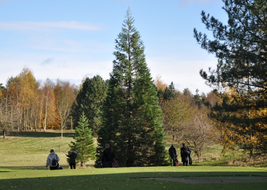 | The other remaining survivor, a little further down the fairway, has grown much slower, being only about one fifth the height of its neighbour. Near the car park there was a third young Giant Redwood (not one of mine) that was roughly the same age but it grew very slowly and was eventually removed to make way for new sporting activities. |