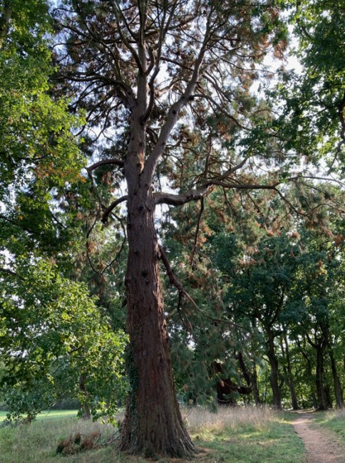 | Aidan emailed in September 2020 to tell us of a number of Redwood locations in Surrey, this is one of his finds. "There are several trees at Broadwater Park near Godalming in Surrey. There are three Giant sequoias, with many young ones planted around the park, two Dawn redwoods and one Coast redwood." Aidan also told us that he is "the youngest ever volunteer verifier for the Woodland Trust’s ATI (Ancient Tree Inventory) which I am quite proud of. I think it’s safe to say I know a lot more about trees than your average 13 year old! I have loved trees all my life and as well as contributing to the ATI I also contribute to a website called monumentaltrees.com. This was where I first started becoming interested in measuring trees, something which I now find very addictive. According to Owen Johnson I have discovered a few new champion trees already, which, in the time of a year, is amazing. I have to say I do prefer conifers more than most broad-leaved trees, although mature beech is a very impressive sight. Redwoods are amazing trees so I would love to contribute here as well." Thank you for your first contribution, great photographs too, I look forward to receiving more! It's great to hear you're a volunteer verifier for the Woodland Trust’s Ancient Tree Inventory, and it's marvellous that you've already found some new champion trees. It's a great past-time and very worthwhile, nowadays trees are widely acknowledged as important to our environment and to our planet. |